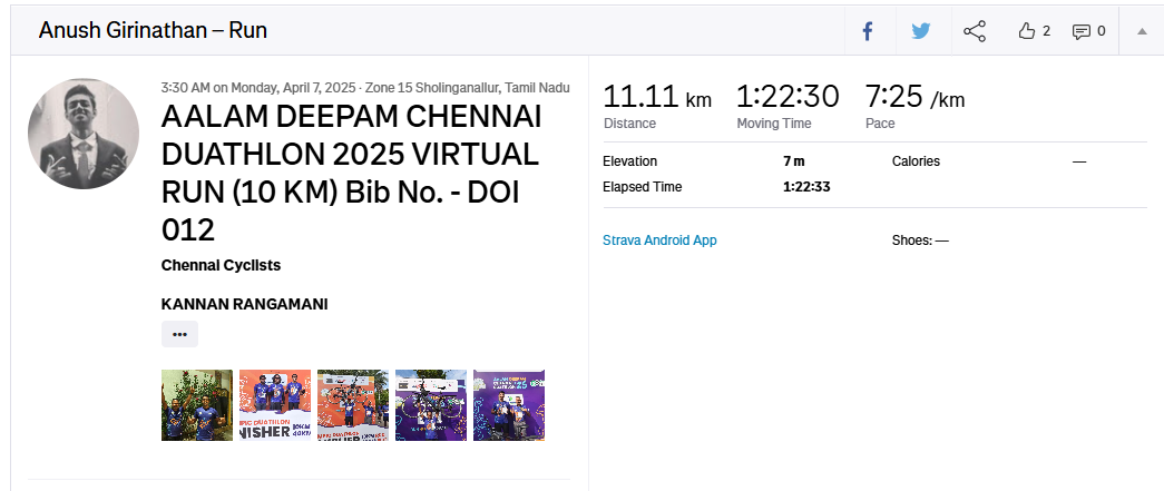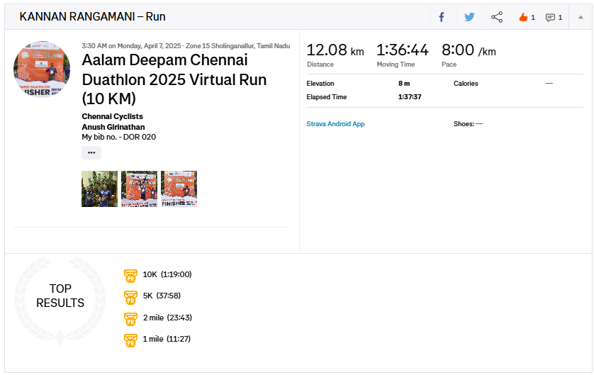 Anush - Check out my run on Strava. My dad and I completed our 10KM virtual run today 🥳
